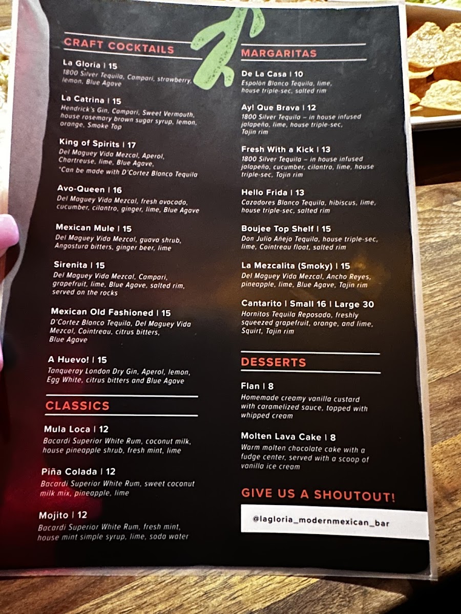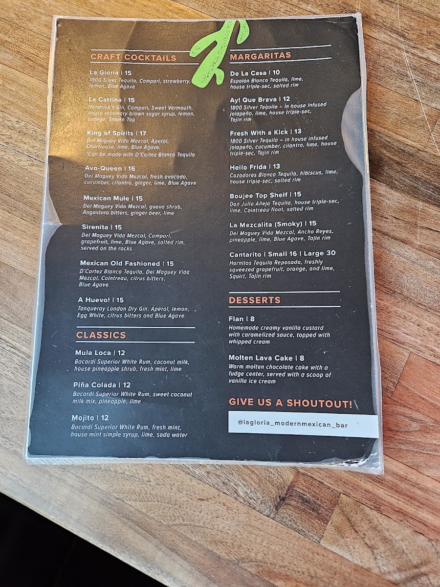 Introducing the Menu: La Gloria Modern Mexican Bar